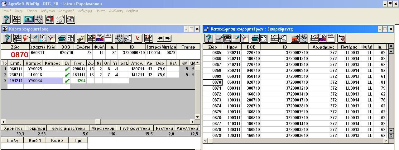 Η επιλογή των χοιρομητέρων της καθαρής φυλής LL και των χοιρομητέρων F1 Y/L, μέσω του προγράμματος της Agrosoft, γίνεται από τον διαχειριστή της μονάδας Βασίλη Ιατρού, Φαρμακοποιό.